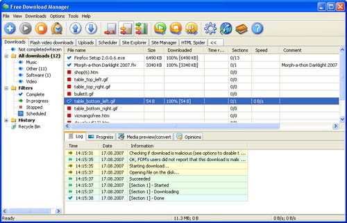 Free Download Manager, jak sama nazwa wskazuje, jest programem stworzonym specjalnie do zarządzania pobranymi plikami. Program pozwala przyspieszyć zarówno proces pobierania, jak i ponowny transfer plików, których ściąganie zostało przerwane.