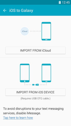 Opcja transferu danych z iCloud (z urządzeń z systemem iOS).