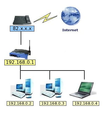 Domyślnie, brama sieciowa (najczęściej router), to znaczy urządzenie podłączone do internetu i dające do niego dostęp urządzeniom sieci lokalnej, domyślnie wybiera adres 192.168.0.1. Następnie router przypisuje urządzeniom sieciowym adresy od