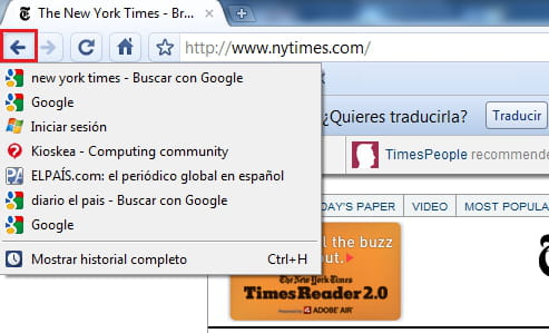 strzałkę w lewo przy pasku adresu. Można również nacisnąć i przytrzymać ten przycisk aż pojawi się lista ostatnio odwiedzanych stron: