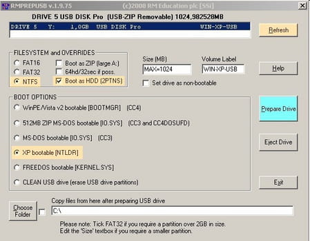 Prepare Drive (Przygotowanie dysków), aby sformatować pamięć USB.