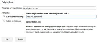 Do którego adresu URL ma odsyłać ten link? wklej link, który chcesz umieścić za tekstem i kliknij