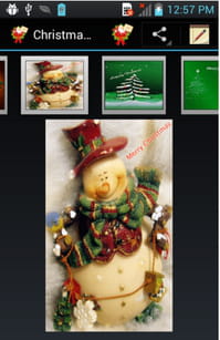 Kartki świąteczne to aplikacja, która oferuje liczne szablony kartek utrzymanych w świątecznym stylu. Kartki można udostępnić za pomocą portali społecznościowych lub ustawić jako tapetę: