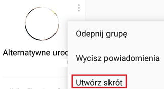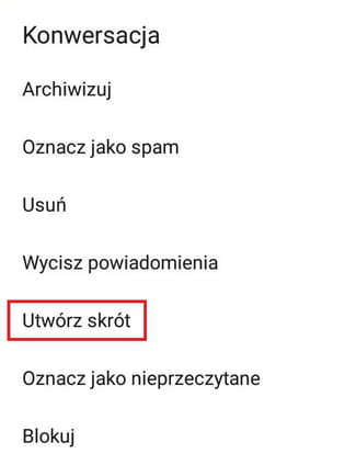 Przytrzymaj dłużej palec na czacie, do którego chcesz utworzyć skrót. Otworzy się menu, z którego wybierz opcję